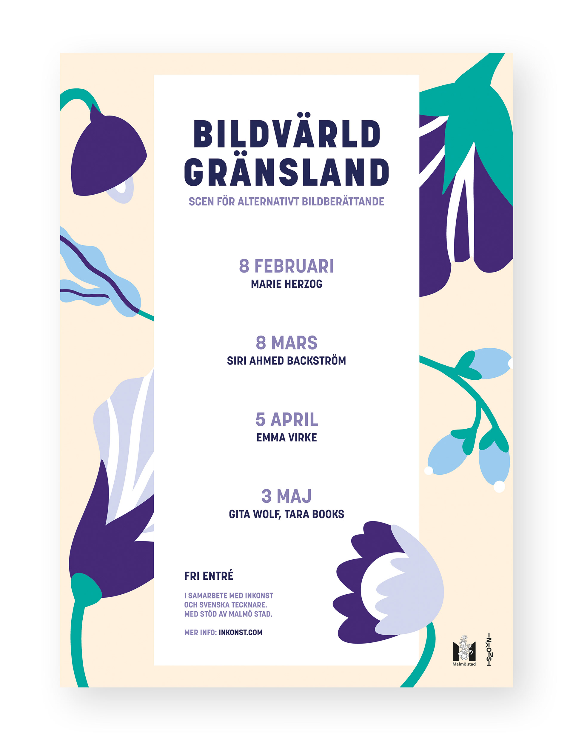 BILDVÄRLD/GRÄNSLAND: Illustrationsfestival är en djupdykning i illustrationskonstens olika perspektiv genom en rad föreläsningar, workshops och panelsamtal på Inkonst i Malmö. Den röda tråden i festivalprogrammet är arbetsprocess och här får du möjlighet att följa den kreativa processen från skiss till färdigt verk, lyssna till samtal och presentationer, bekanta dig med nya tekniker och mycket annat! Festivalen riktar sig till yrkesverksamma illustratörer, nyfikna hemmaskissare och alla som har ett intresse för illustration och bildberättande.